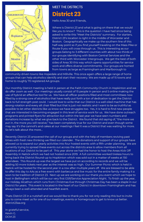 The Area 30 newsletter, The Messenger, has an article from DCM Kevin G: click here.