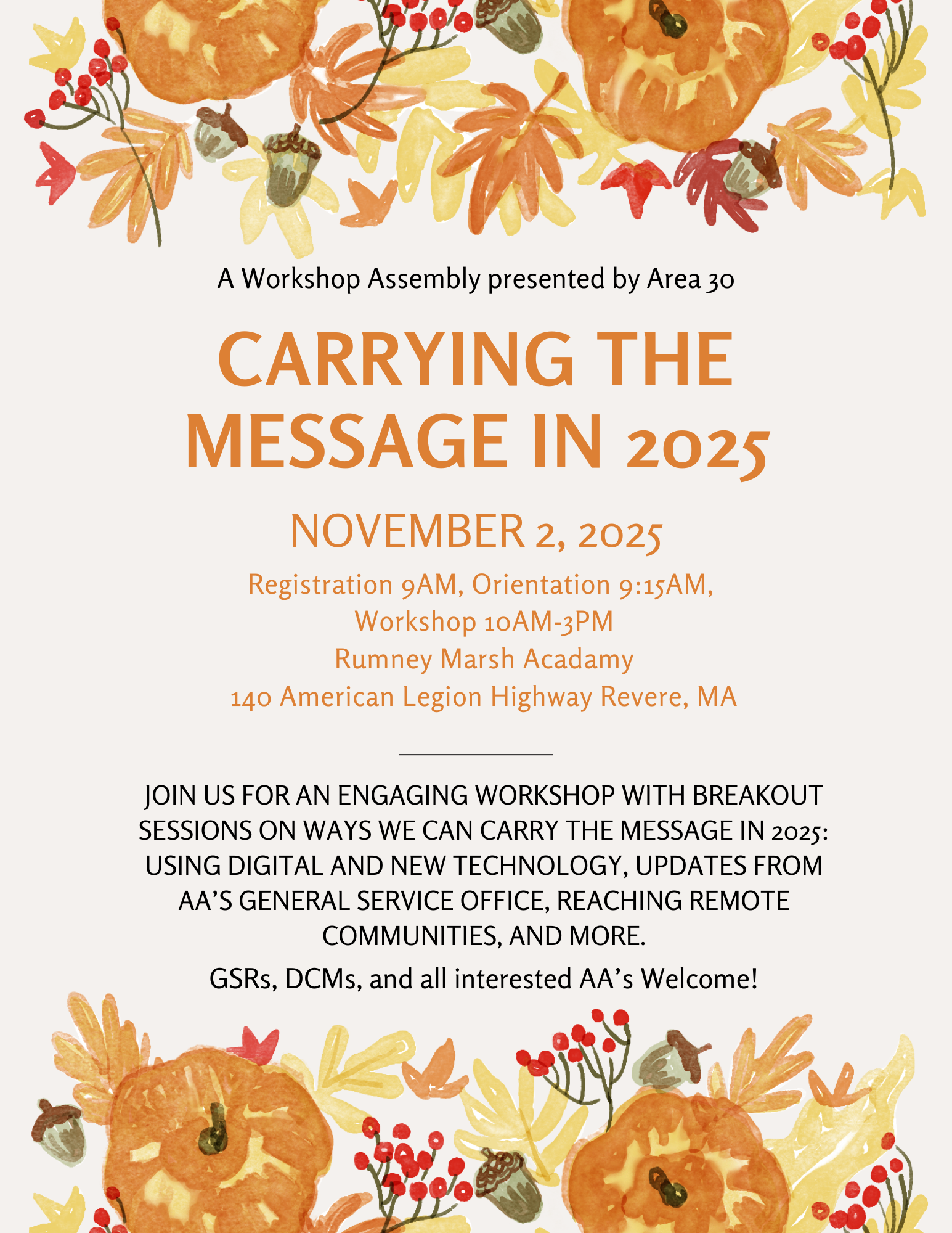 9A - 9P Thanksgiving Alcathon All day AA meetings. United Methodist 77 Hall St Leominster.