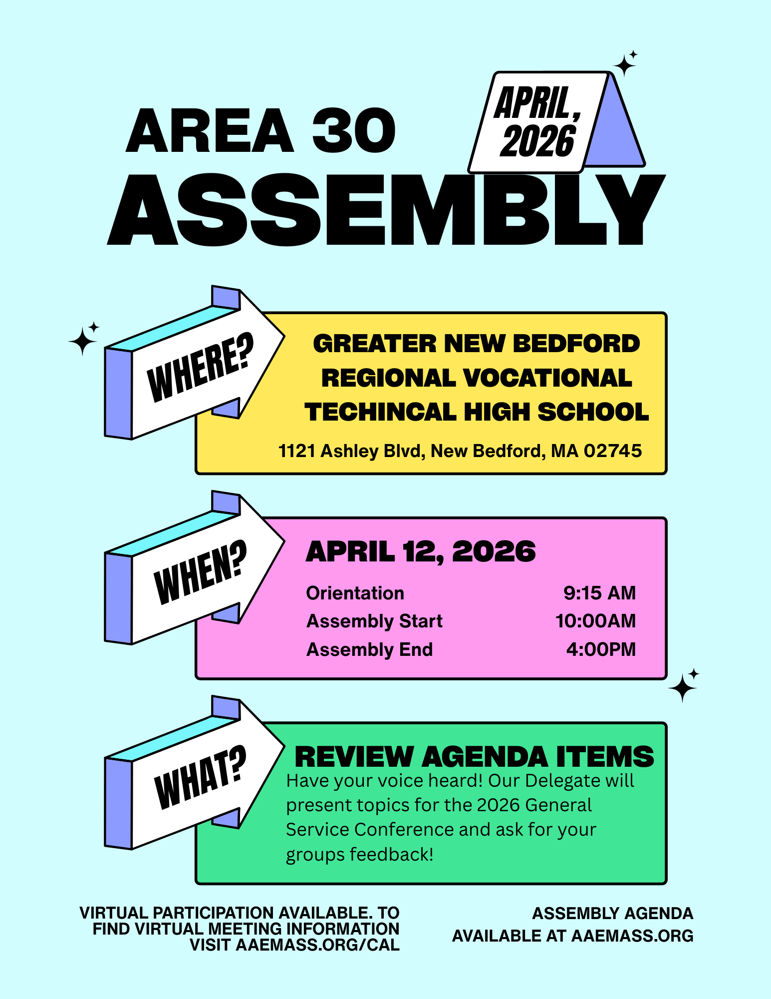 Sun Apr 12 Preconference Area Assembly